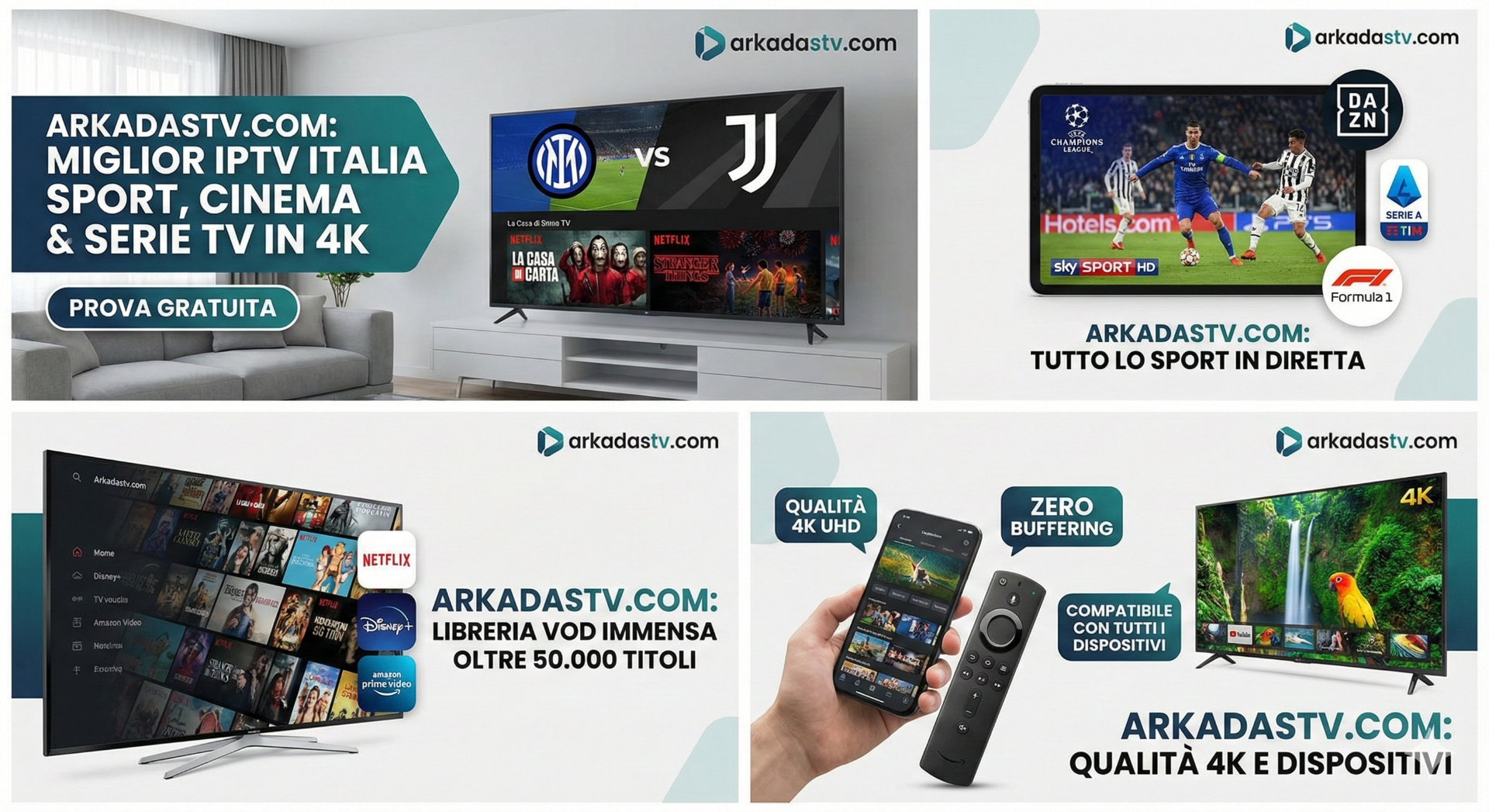 ArkadasTV offre i canali, i film e le serie IPTV più popolari al mondo in alta qualità. Il nostro servizio IPTV, ininterrotto e senza buffering, è facilmente accessibile da qualsiasi dispositivo grazie a un'interfaccia intuitiva.